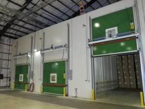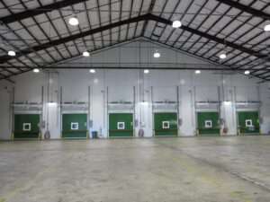 The project consists 6 large Controlled Atmosphere Treatment chambers, each of them able to hold 600 C48 cartons (egual to 6 pcs 40 Ft Containers, each). The chambers are all built in an existing warehouse, which is divided in an untreated and treated area. The chambers have 1 door at every side, and there is a division wall on top of the chambers stretching to the top ceiling of the building.